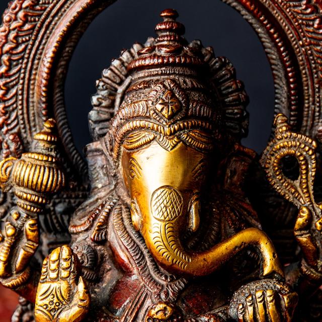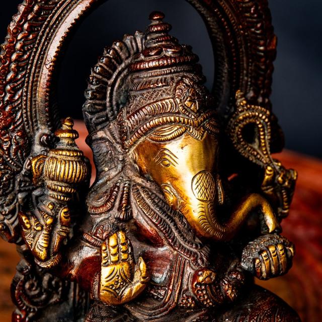 しっかりとしたサイズがあり、作りは本格的で、古来より仏像製作に使われてきたブラス製で作られているため、実際の重量より重厚感を感じられます。ブラスの輝きと細かく彫刻された細工にきっとご満足いただけると思います。■象の頭を持つユニークな姿