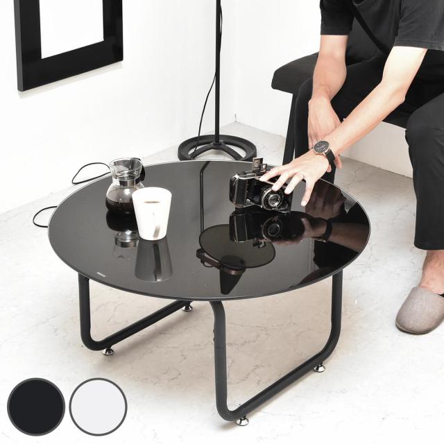 リビングテーブル 円型 直径75cm ガラス天板 ROND ( 丸 ラウンド ローテーブル センターテーブル テーブル 強化ガラス 簡単組立 シンプル モノトーン スタイリッシュ )