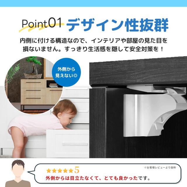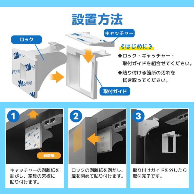 ・セット内容:チャイルドロック4個、キャッチャー4個、取付ガイド1個、マグネットキー1個、キーキャッチャー1個