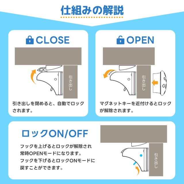 チャイルドロック マグネット 4個セット 引き出し ドア 棚 扉 引き戸