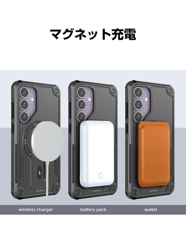 サムスン ギャラクシー Samsung Galaxy S25 Ultra ケース カバー PC+TPU素材 マグネット充電 スタンド機能付き 指紋防止 手触り抜群 保護ケース カメラレンズ保護 便利 人気 おすすめ おしゃれ 便利性の高い 背面カバー