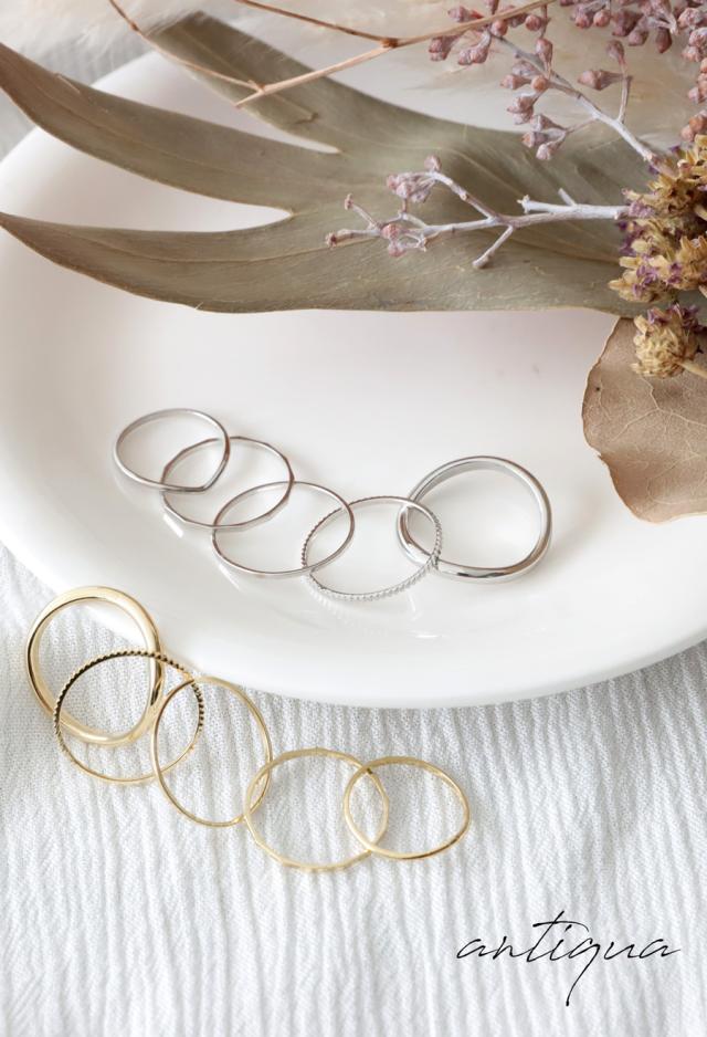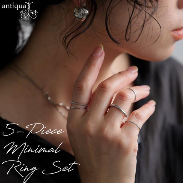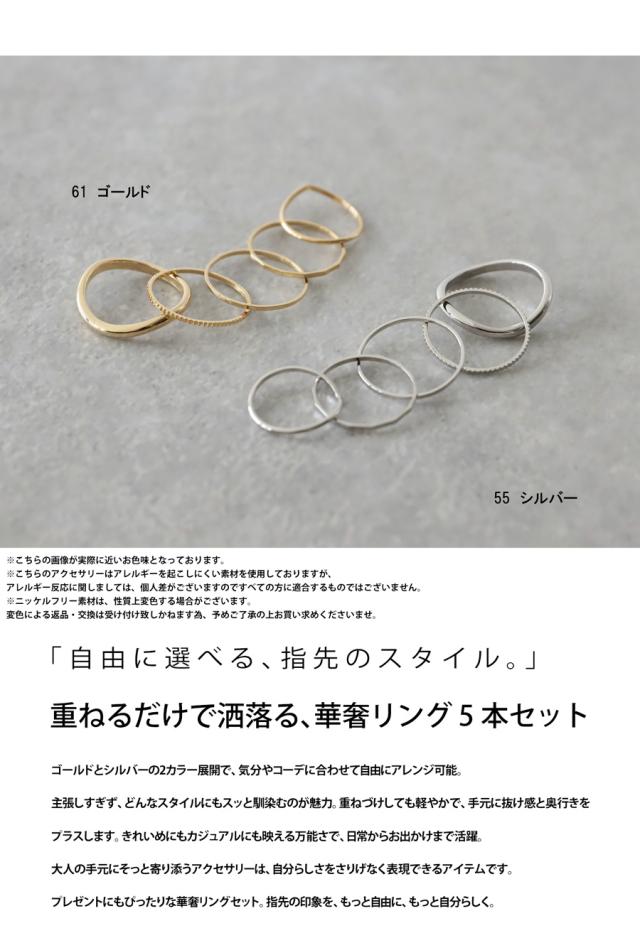 華奢で繊細なシルエットが魅力のリング5本セットです。