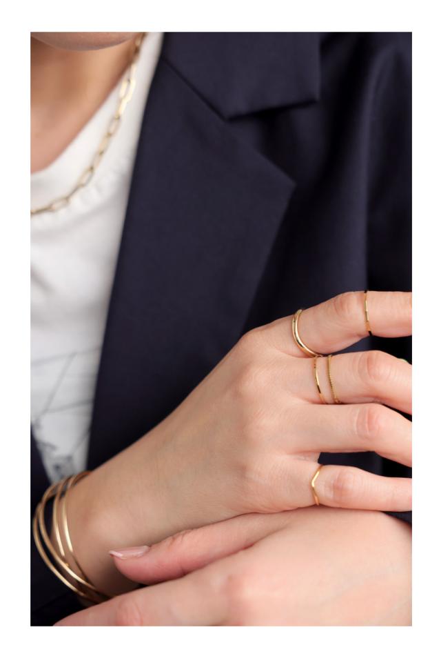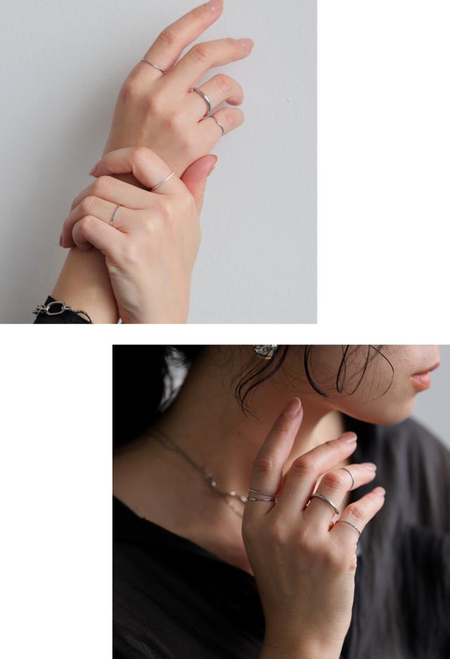 異なる形状のリングを組み合わせて、手元に表情と奥行きをプラスできます。