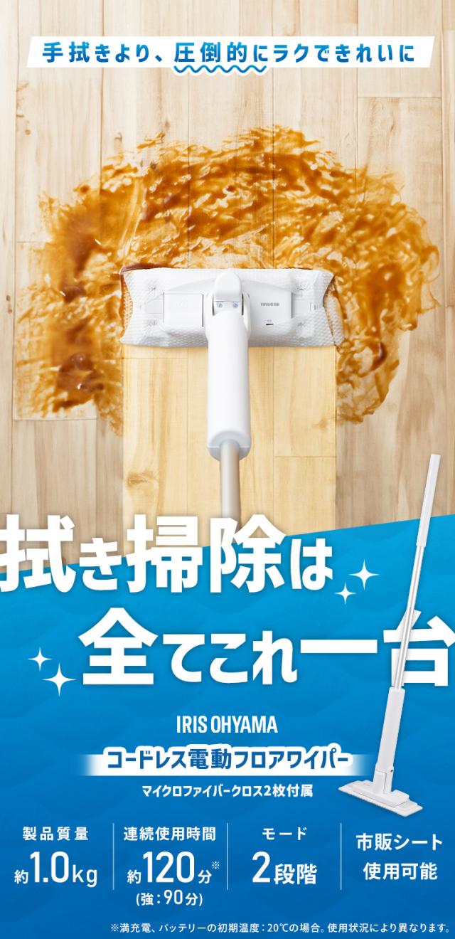(検索用:電動モップ・コードレス・フローリングワイパー・モップ・水拭き・床掃除・雑巾・ワイパー・床拭き・電動フロアワイパー・掃除・軽量・充電式・4967576739726・アイリスオーヤマ)