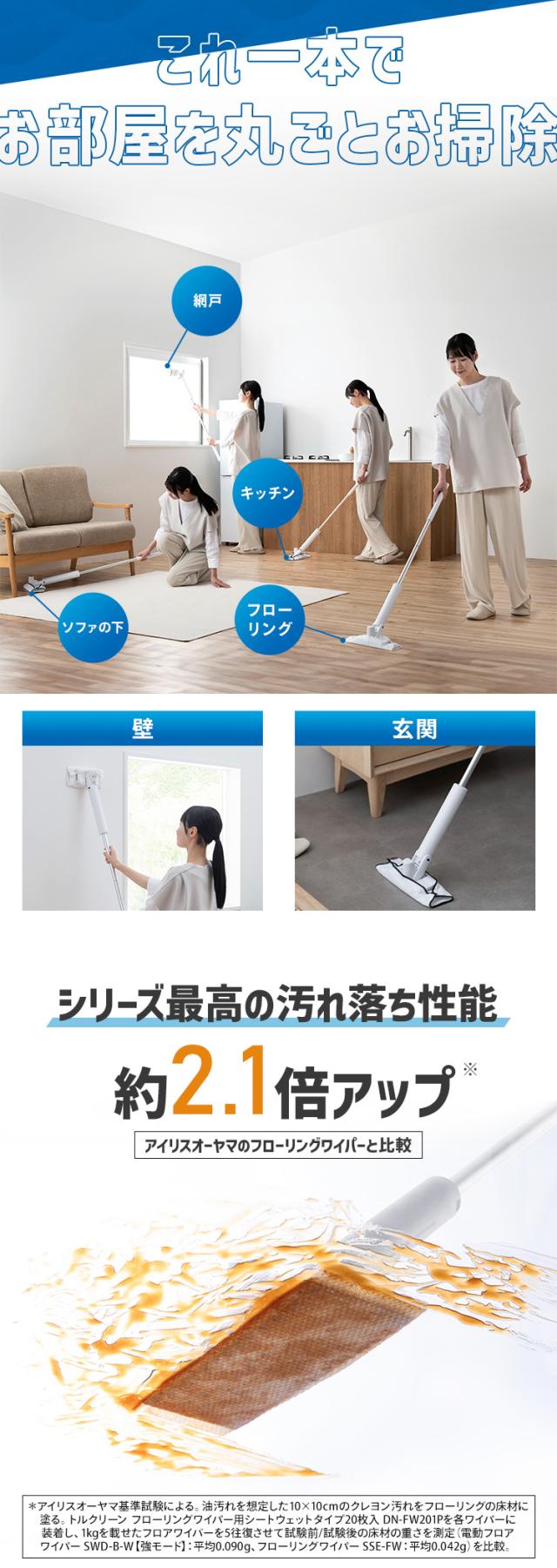 電動モップ コードレス フローリングワイパー モップ 水拭き 床掃除 雑巾 ワイパー 床拭き 電動フロアワイパー 掃除 軽量 充電式 アイリスオーヤマ SWD-B-W 安心延長保証対象