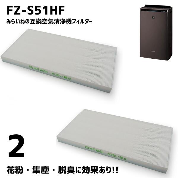2枚セット!FZ-S51HF 空気清浄機 フィルター 集じんフィルター 脱臭フィルター 空気清浄機 脱臭 HEPAフィルター 互換品