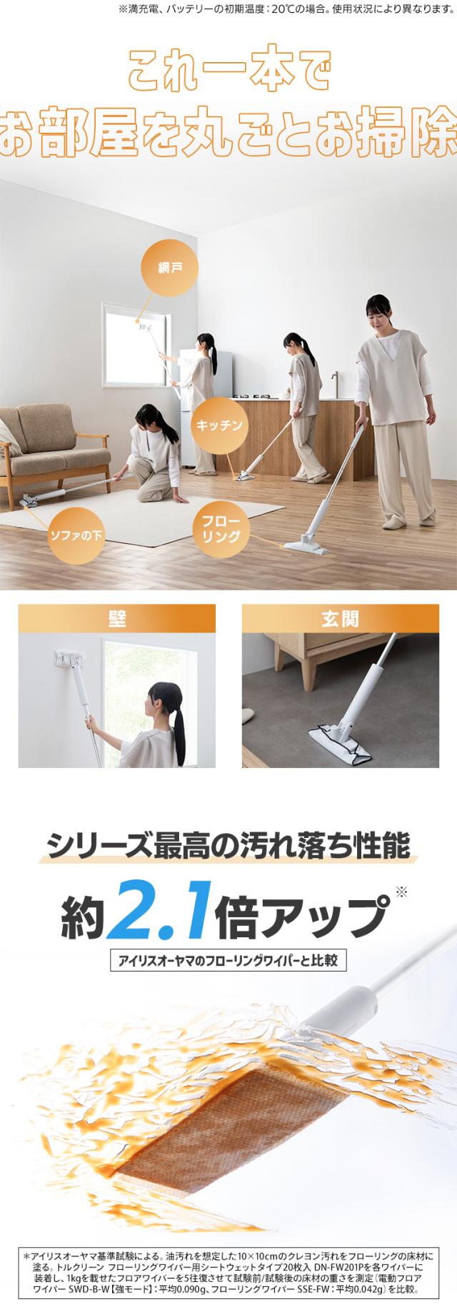 電動モップ コードレス フローリングワイパー モップ 水拭き 床掃除 雑巾 ワイパー 床拭き 電動フロアワイパー 掃除 軽量 充電式 SWD-B-W アイリスオーヤマ *