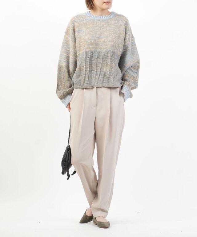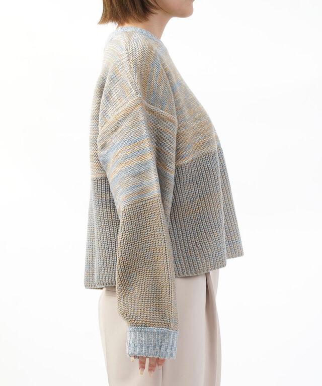 メランジのカラーリングがポイントのショート丈ニット。