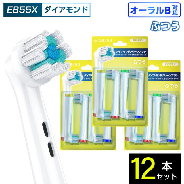 互換LAB オーラルB用 替えブラシ ブラウン互換 ダイアモンドクリーンブラシ EB55X 12本 着色汚れ ふつう ブラシ 替えブラシ 電動歯ブラシ カラーリング 歯垢除去 歯茎 歯茎ケア おすすめ 口腔ケア デュポンナイロン ステイン 口臭 口臭ケア ダイアモンドクリーン 送料無料