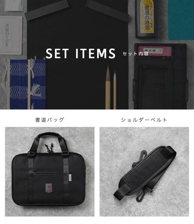 書道セット 男の子 おしゃれ 書道バッグ ショルダーベルト付 習字セット 習字道具 キッズ 子供 小学校 小学生 通園 通学 入学 入学グッズ ブラック 無地