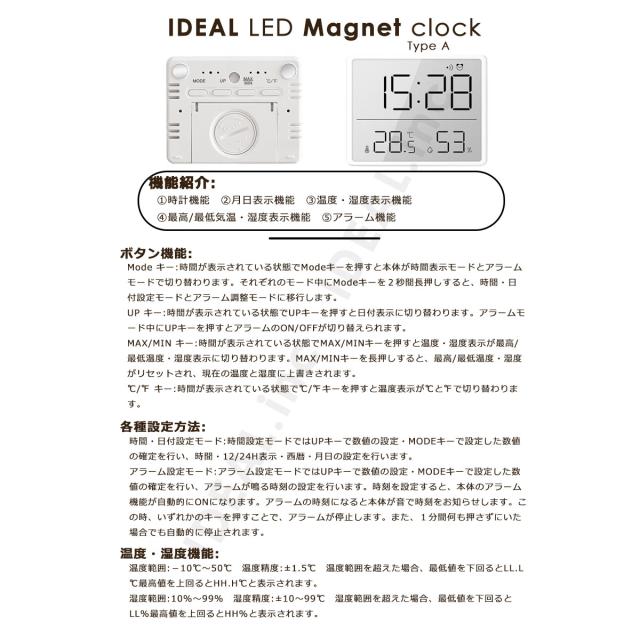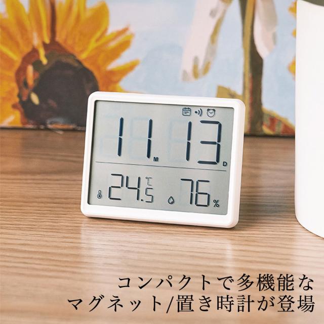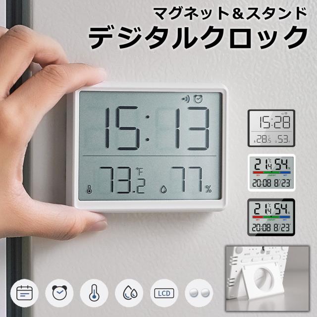 時計 マグネット 磁石 おしゃれ 置き時計 掛け時計 キッチン シンプル デジタル コンパクト 持ち運び 熱中症対策 卓上スタンド アラーム 温度表示 湿度表示 日付表示 見やすい 簡単操作 タイマー リビング 寝室 インテリア 小さい 人気