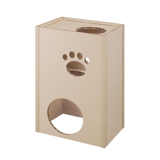 | 商品説明 | ●ねこが好きな段ボール素材、強化段ボールを使用したキャットタワーです。 ●一般的な段ボールと比較して、厚さは約3倍、中心はハニカム構造でねこが飛び乗っても安心です。 ●段ボール製で、使用後の処理に困りません。 ●インテリアに馴染む木目調デザインです。 ●かわいらしい肉球形の小窓付きで、ねこの様子も見られます。 ●出入口は側面と天面の2か所です。 ●お客様組み立てとなります。工具を使わず簡単に組み立てができます。 ■出入口サイズ(約): ・側面出入口:直径260mm ・天面出入口:直径210mm ■商品内寸(約):475×360mm ■商品外寸(約):505×395×780mm ■耐荷重(約):6kg ■材質:段ボール |