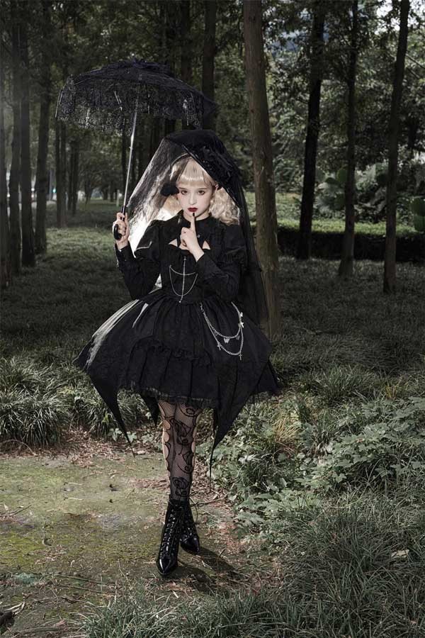 ワンピース ロリータ ハロウィン 魔女風 ウイッチ 魔法使い ショート丈 ミニ レディース ゴスロリ ハイウエスト Aライン 暗黒風 ロリィタファッション 長袖 ロリータワンピース コスチューム