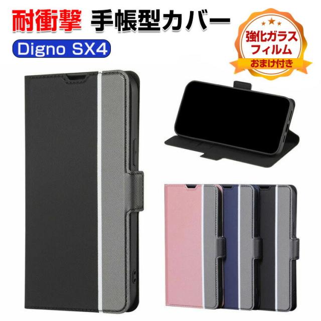 KYOCERA Digno SX4 ケース 耐衝撃 カバー 手帳型 財布型 TPU&PUレザー おしゃれ 汚れ防止 スタンド機能 カード収納 人気 便利性の高い ディグノ エスエックスフォー SX4 KC-S305 / SX4 Wi-Fi KC-S205 ケース 手帳型カバー CASE 強化ガラスフィルム おまけ付き