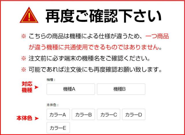 | 注意 | ※対応機種により細部デザインが異なります。 ※端末本体(イヤホン・ヘッドホン、SOLID BASS ATH-CKS50TW2など)は含まれておりません。 ※画像はイメージであり、商品の仕様は予告なく変更される場合がありますので予めご了承ください。 ※掲載の商品画像と実際の色は室内、室外での撮影、モニターの表示により若干異なる場合がありますので、ご了承くださいませ。 ※画像は一例となります。購入前に必ずお手持ちの機種をご確認ください。 ※取付は自己責任でお願いします。 | |||||