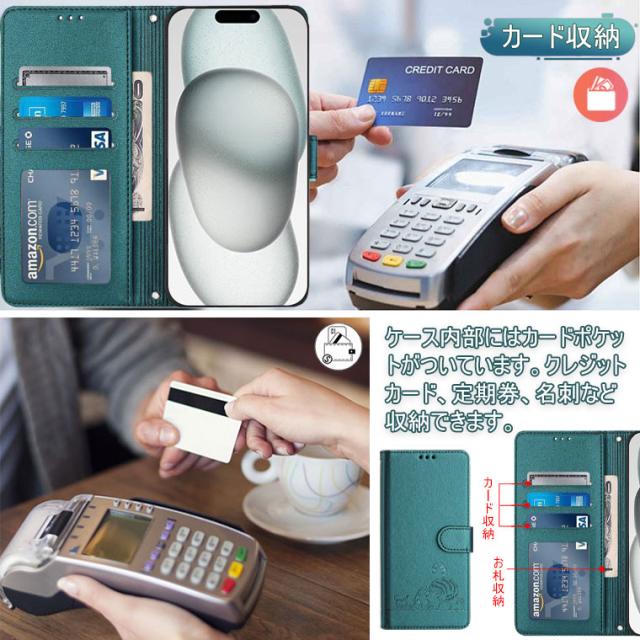 ケースの内側にはカードスロットがあり、名刺やカード、紙幣などが収納可能です。
