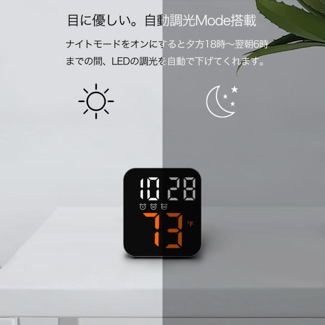 機能【アラーム機能】【自動調光】【温度表示】【湿度表示】【日付表示】