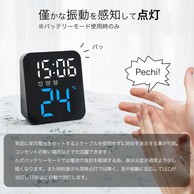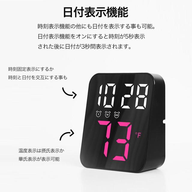 | 機能 | 【アラーム機能】【自動調光】【温度表示】【湿度表示】【日付表示】 |