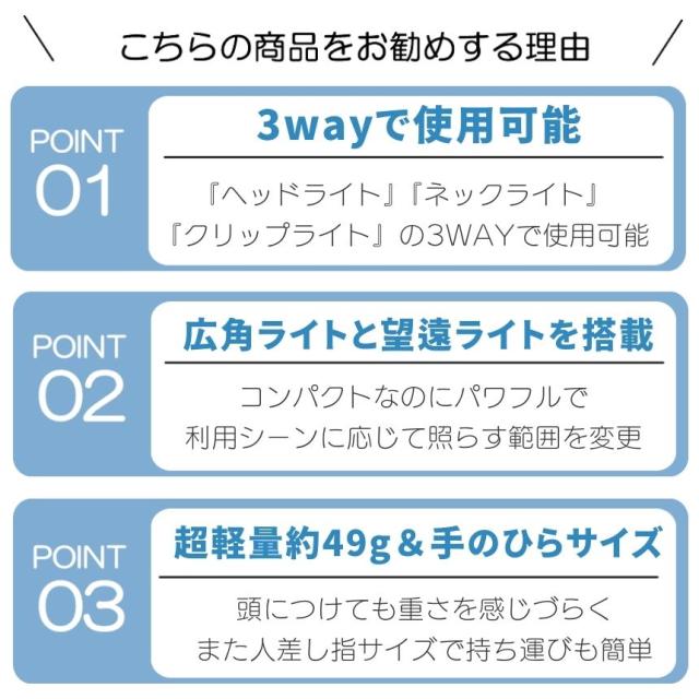 夜間のランニング、登山、夜釣り、散歩など、さまざまなニーズに大活躍。