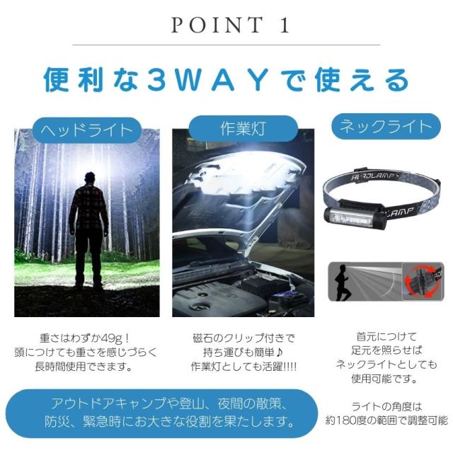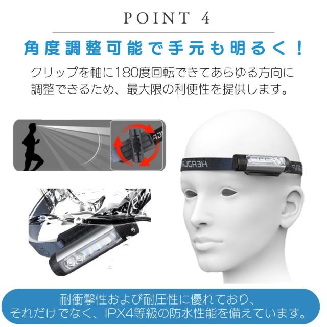 ヘッドライト 充電式 懐中電灯 ハンディライト ヘッドランプ led ライト 最強 ハンディ高輝度 クリップライト TYPE-C ハンドライト フラッシュライト 登山 釣り 作業 マグネット 磁石 小型 軽量 キャップ ウォーキング アウトドア キャンプ 夜間 防犯
