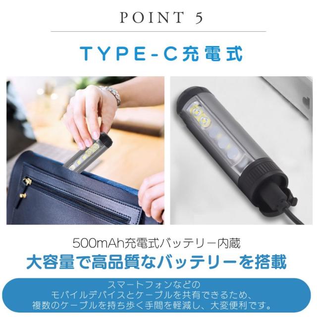 いつでも明るい光を確保できます。また、充電ポートには