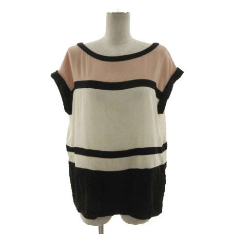【中古】ダイアグラム グレースコンチネンタル ブラウス 袖ダブル 配色 黒 アイボリー ピンクベージュ 36