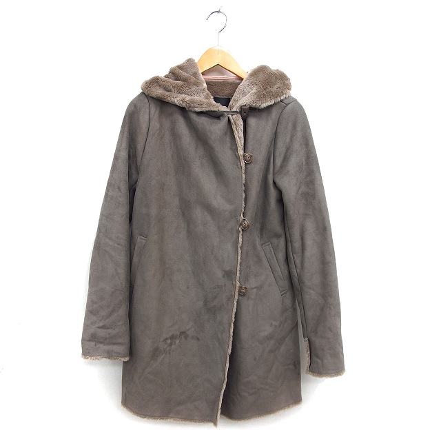 【中古】ロッソ ROSSO アーバンリサーチ フェイクムートン コート アウター ロング ボア フード フェイクスエード F