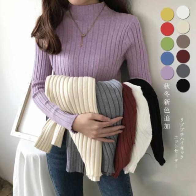 長袖 レディース リブハイネック ニットセーター 長袖 レディース リブハイネック タートルネック トップス セーター リブ ハイネック 伸縮性 暖か すっきり見え 軽い 重ね着 きれいめ あったか お出掛け