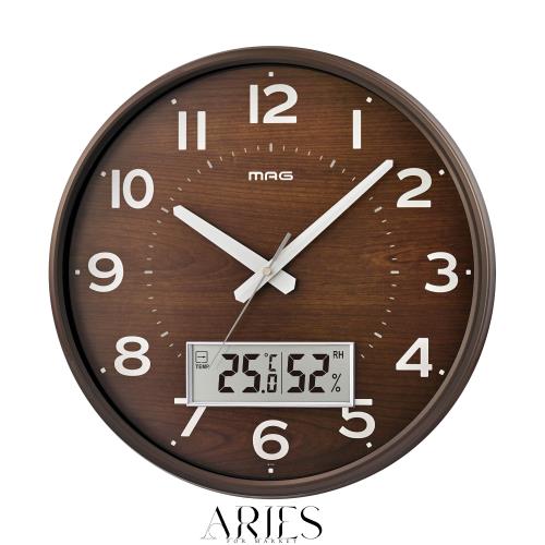 ◆商品名:MAG(マグ) 掛け時計 電波時計 アナログ ゴーフル 温度 湿度 表示 夜間秒針停止機能付き ブラウン W-776BR-Z