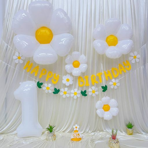 【セット内容】1フェルト布ガーランド×2 2デイジーバルーン ×4 3数字バルーン×1 4三角帽子×1 5リボンひも (10m)