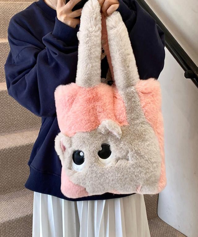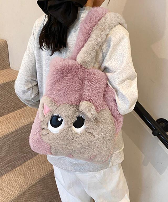 ファートートバッグ ふわふわ 猫柄鞄秋冬