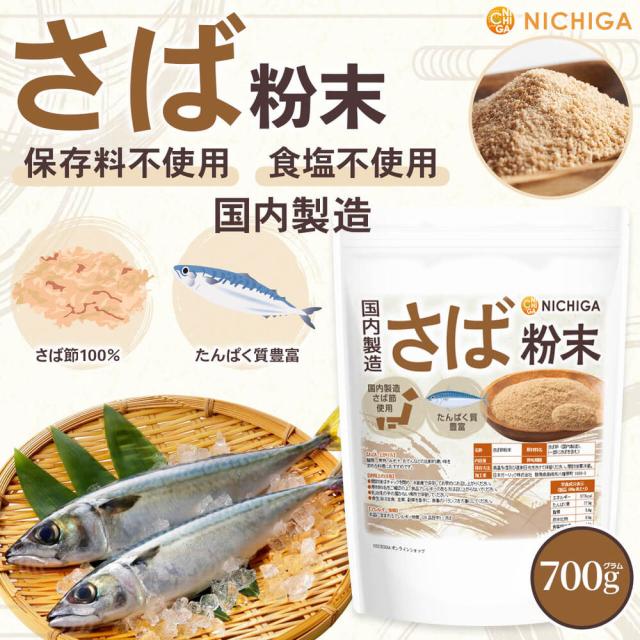 さば粉末(国内製造) 700g 【メール便専用品】【送料無料】 たんぱく質豊富 保存料不使用 食塩不使用 無着色 [05] NICHIGA(ニチガ)