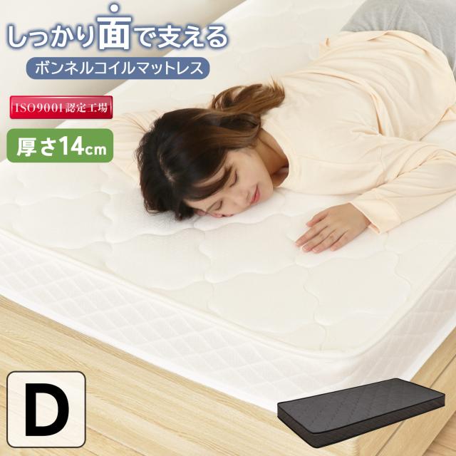 マットレス ダブル ボンネルコイルマットレス 厚さ14cm オールシーズン ベッド コイルマットレス 通気性 寝具 圧縮梱包 薄型 ボンネルスプリング
