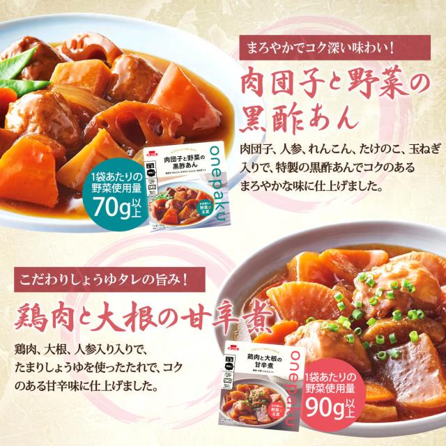 おうち居酒屋 シリーズと手軽に たんぱく質 と 野菜 が摂れる onepakuシリーズは レンジでチン 出来る レンジ対応 パウチで温めも簡単!