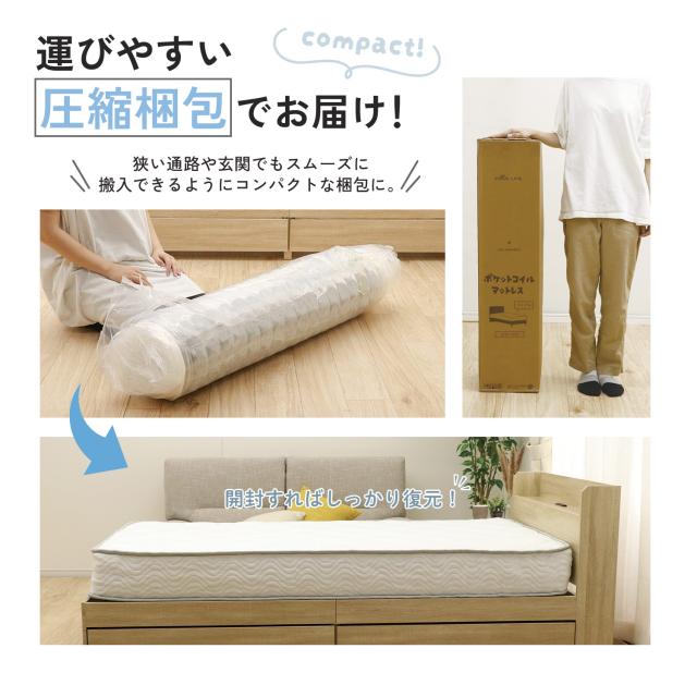 マットレス シングル ポケットコイルマットレス 厚さ 20cm オールシーズン ポケットコイル エッジサポート ベッド スプリングマットレス 圧縮梱包 寝具