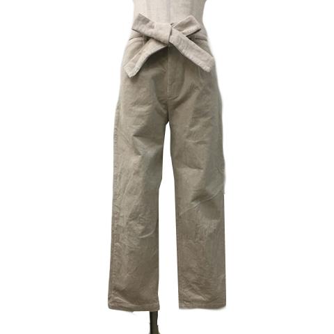 【中古】フラワー パンツ テーパード ロング ウエストゴム コーデュロイ リボンベルト 無地 F ベージュ レディース