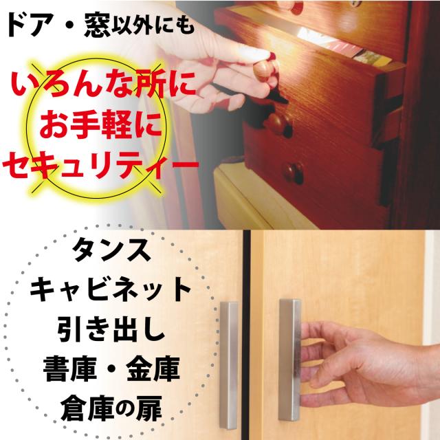 ●コンパクトでスリムなデザイン。家のドア・窓ガラスをはじめ、小窓、扉 書庫、倉庫、引き出し、タンス、押し入れ、さまざまな場所に。