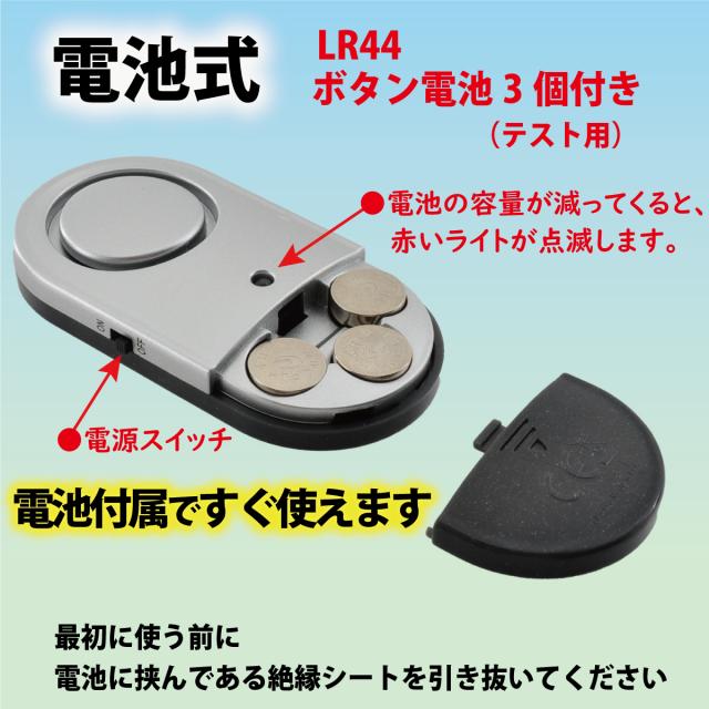 ボタン電池(LR44)×3(テスト用につきお早めに交換してください)