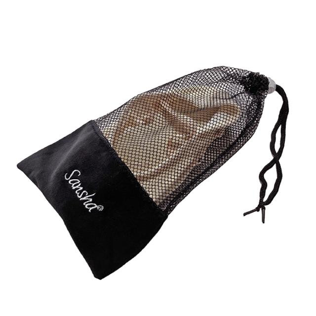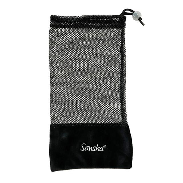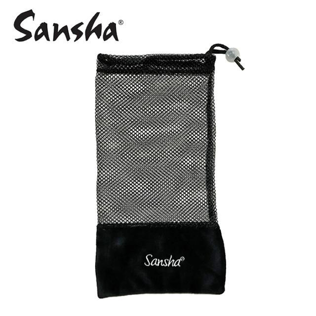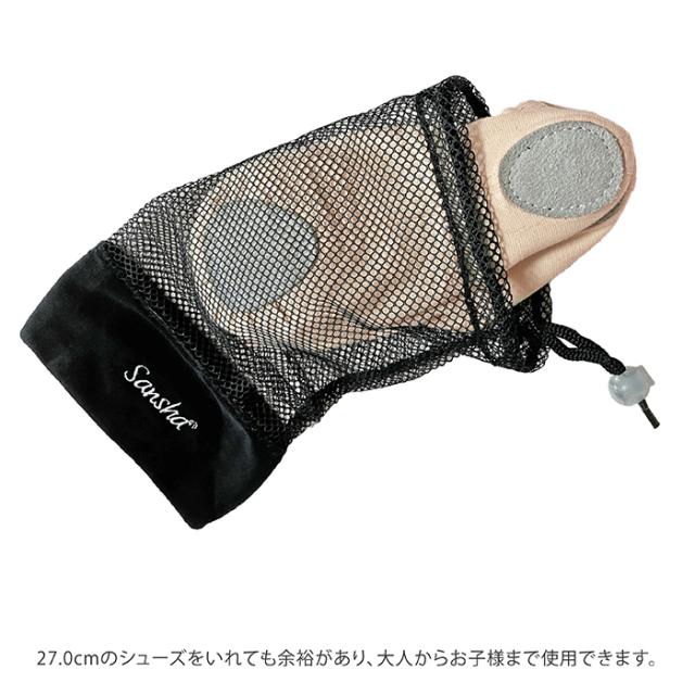 【サンシャ】メッシュ バレエ シューズケース 黒 ロゴ入り SAN-MESH 巾着 ポアント トウシューズ入れ