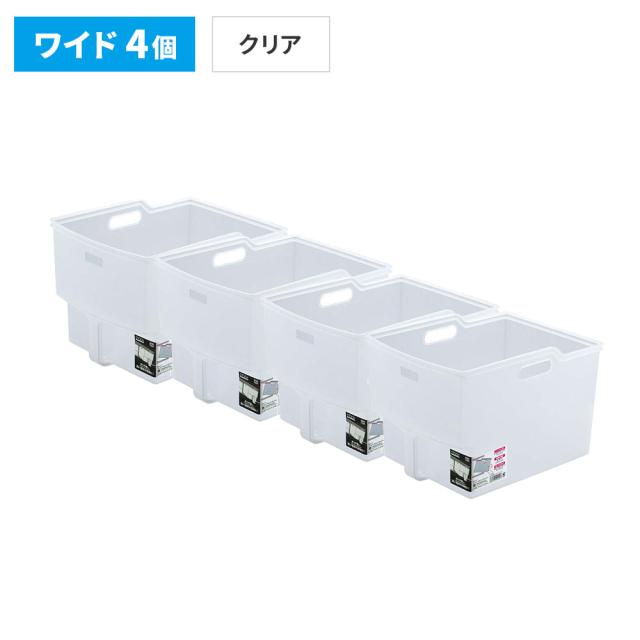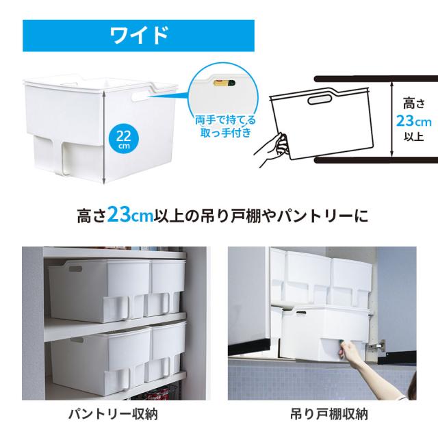 収納 ケース ボックス 容器 取っ手付き 持ち手つき 戸棚 棚 パントリー 食糧庫 ストック 保管 保存 整理整頓 クローゼット 棚上 WIC 幅24 奥行33.4 高さ22 cm センチ ポリプロピレン製 日本製 吊戸棚 吊り戸棚 日用品 タオル 取り出しやすい 衣類 缶詰 調味料 お弁当箱 キッチン雑貨 小物収納 キッチングッズ ホワイト 透明 半透明 白 クリア 前面持ち手 出し入れ簡単 すっきり 4個セット ワイド セット割引 便利 シンデレラフィット おすすめ 4962191015286