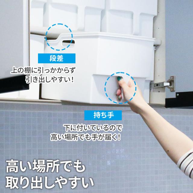 取り出しやすい!前面の持ち手が下についているので、高い場所でも引き出しやすくなっています。