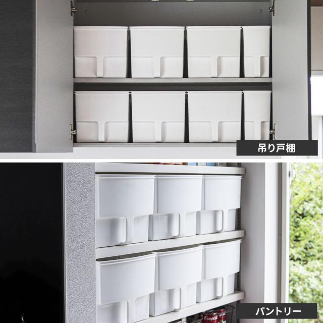 カラー不透明な「ホワイト」は、中身が隠せるので見た目にもスッキリ。見せる収納としてパントリーでも使用できます。