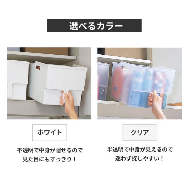 キッチン収納 吊り戸棚ボックス ワイド 4個セット ホワイト / クリア | 吊り戸棚収納ボックス パントリー収納 収納ケース ストッカー ボックス 取っ手付き 持ち手付き 吊戸棚 整理ボックス 戸棚 収納 食器棚 台所収納 プラスチック