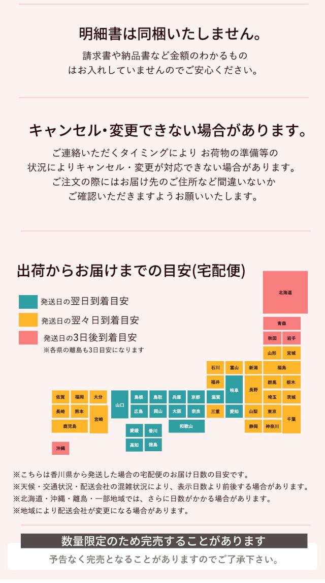※一部地域・離島につきましては、表示のお届け予定日期間内にお届けできない場合があります。補足事項