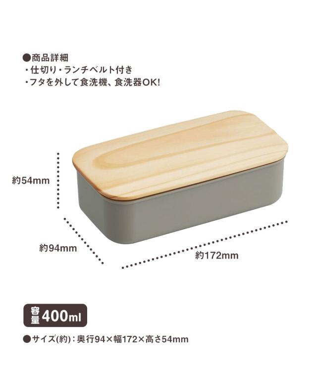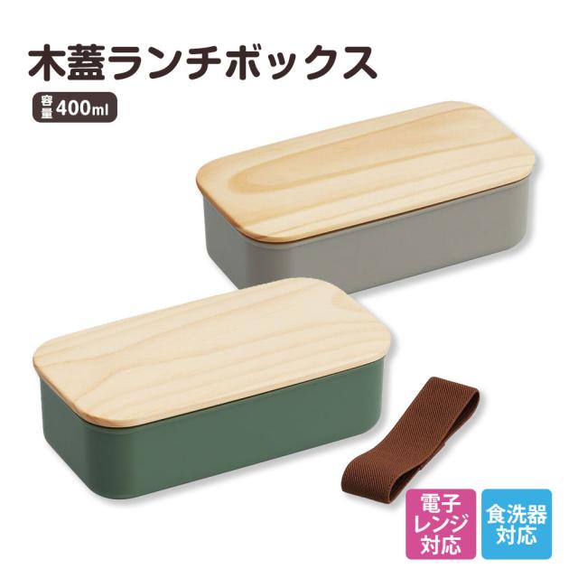 \今だけ10%OFF/ 弁当箱 400ml 1段 木蓋 レンジ対応 仕切り付き ベルト付き ランチボックス 大人 女性 学生 おしゃれ シンプル 女子 ランチグッズ パッキン付き 軽量 食洗機OK 一段 天然木 グリーン 緑 グレー PAL5FK