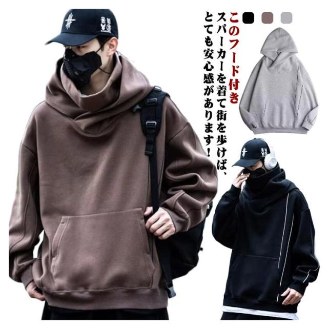 ボリュームネックパーカー カップル メンズ レディース プルオーバーパーカー タートルネック スウェット フード付き 春秋 ゆったり 大きいサイズ おしゃれ カジュアル