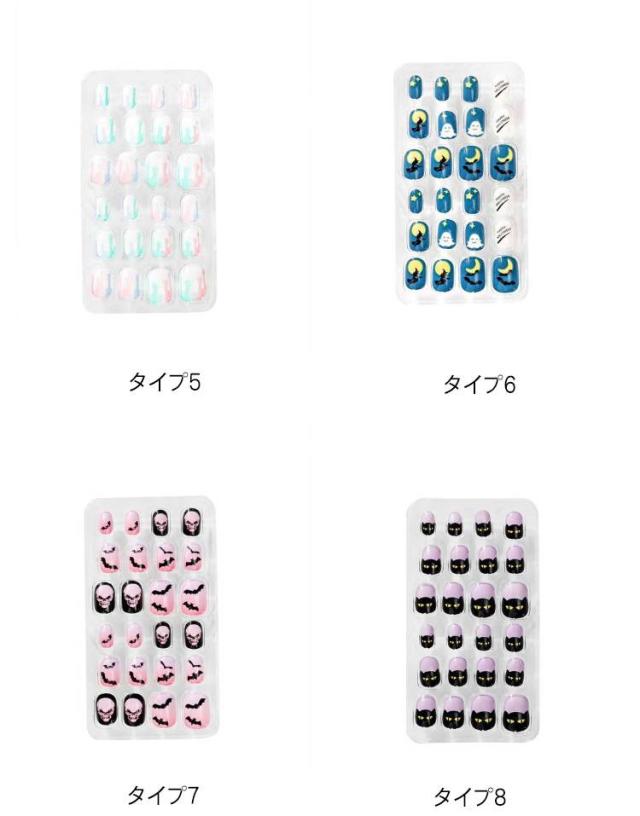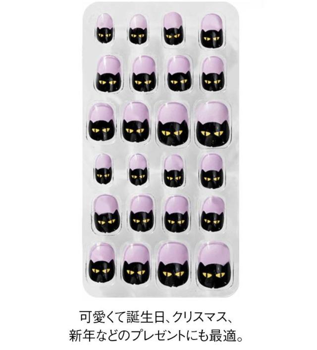 つけ爪 24枚組 キッズ 子供用 猫 貼るだけ テープ ネイルチップ フルーツ 黒猫 デコレーション 誕生日 おしゃれ つけ爪 粘着テープ アクセサリー 簡単