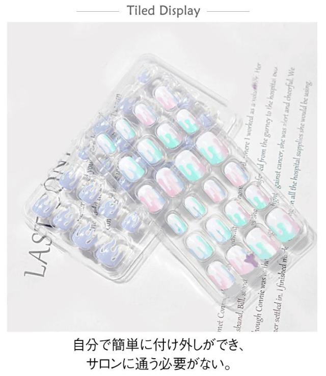 | 爪にはるだけで装着して使用するキッズつけ爪。 自分で簡単に付け外しができ、サロンに通う必要がない。 自爪の上に重ねて付けるため、長さや色味などの自爪のお悩みをカバーできる。 可愛くて誕生日、クリスマス、新年などのプレゼントにも最適。 | |