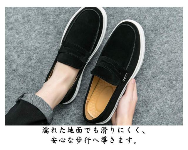 | 春、夏、秋、冬オールシーズン履けるメンズローファーです。 足に負担が掛からない軽量設計! 濡れた地面でも滑りにくく、安心な歩行へ導きます。 | |