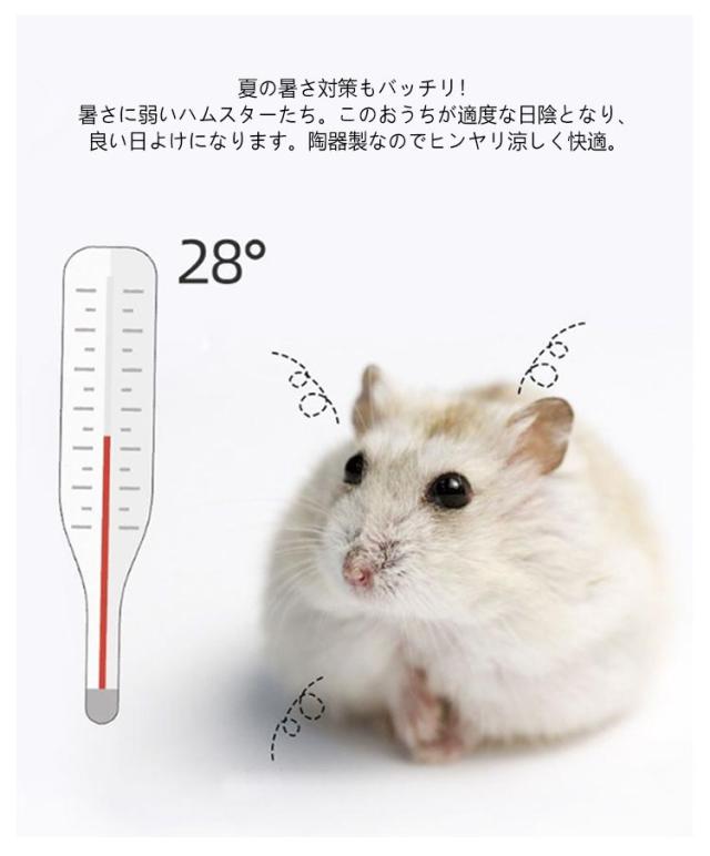| 涼しいひんやり 陶器ペットハウス 2個セット 狭い場所が大好きなハムちゃんたちも大満足のカワイイおうち! 小さなペットたちは光のあたらない、暗いところを好みますよね。 このハムスターデザインのおへやは、そんな小動物たちが安心できる寝床になりますよ。落ち着ける隠れ家があれば、ペット達は大喜び! 夏の暑さ対策もバッチリ! 暑さに弱いハムスターたち。このおうちが適度な日陰となり、良い日よけになります。陶器製なのでヒンヤリ涼しく快適。 まるまる洗えてお手入れも簡単!いつも清潔な状態を保てます。砂浴びの場所としても使えます。 何もしなくても、写真を映えさせてくれるペットグッズ! 数ある小動物用ハウスの中でも、見た目の可愛らしさがダントツな商品です。 このハウスと愛らしいペットたちの写真がSNSでは話題に!愛するペットに是非、カワイイおうちをプレゼントしてあげてくださいね。 ※陶器の性質上、製造工程時に細かいキズや凸凹、汚れが残る場合がございます。恐れ入りますが予めご了承ください。 | |